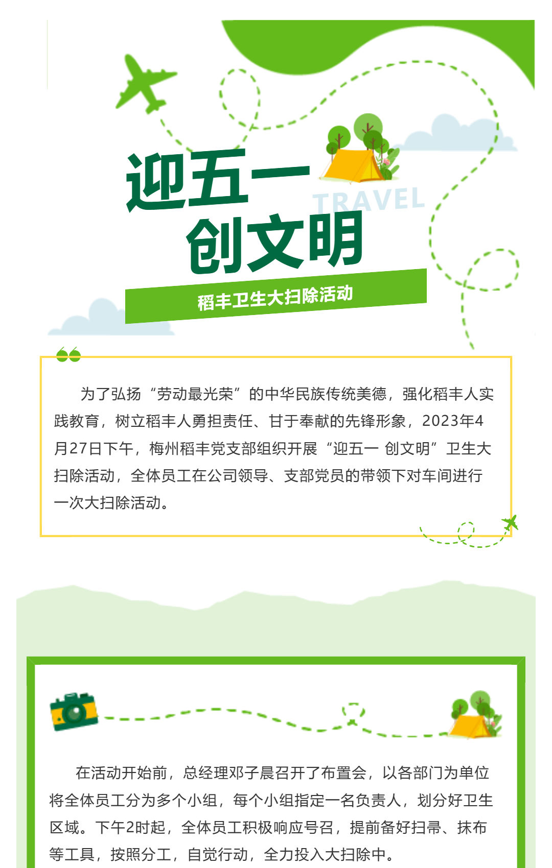梅州稻豐黨支部開展“迎五一 創(chuàng)文明”衛(wèi)生大掃除活動